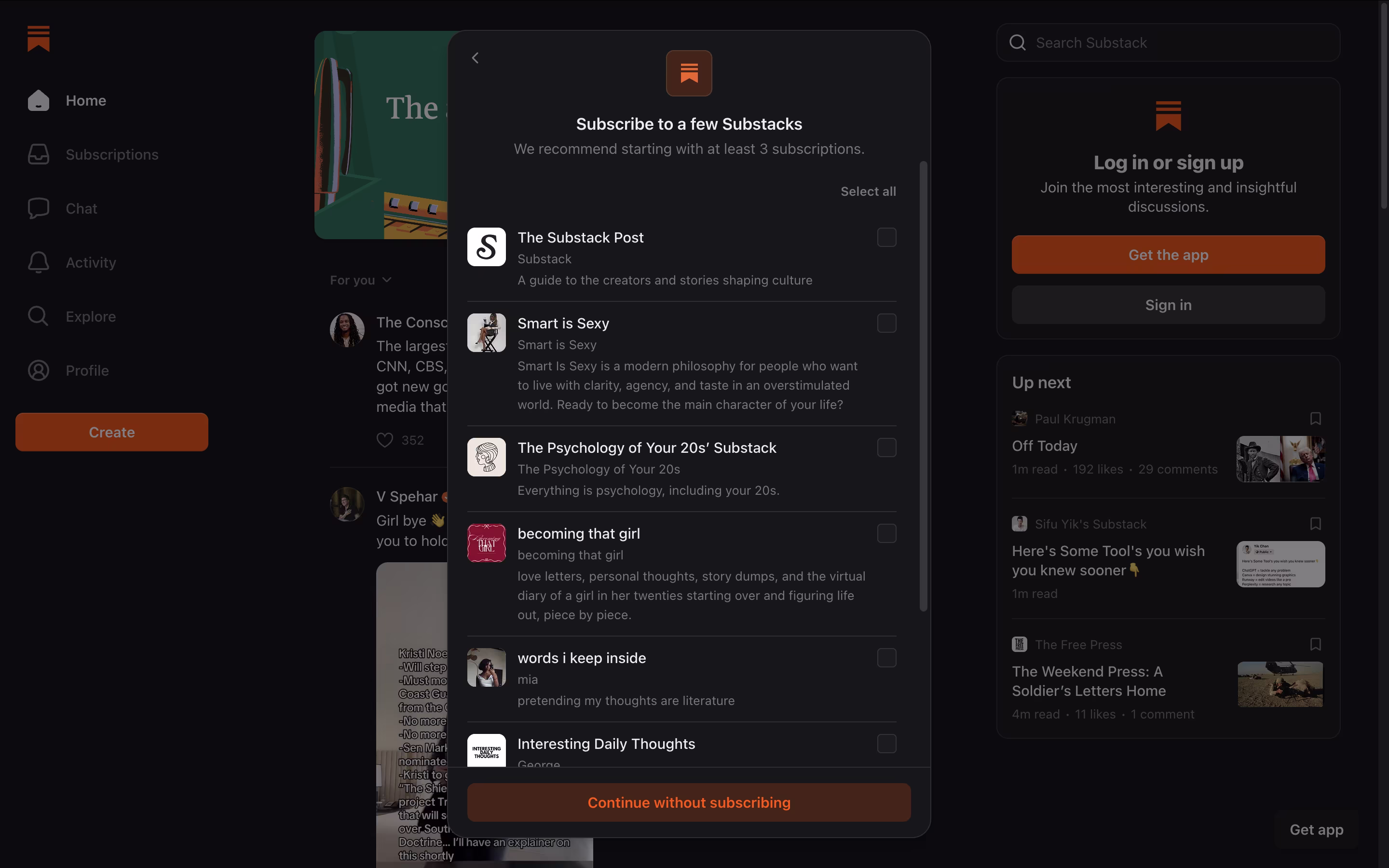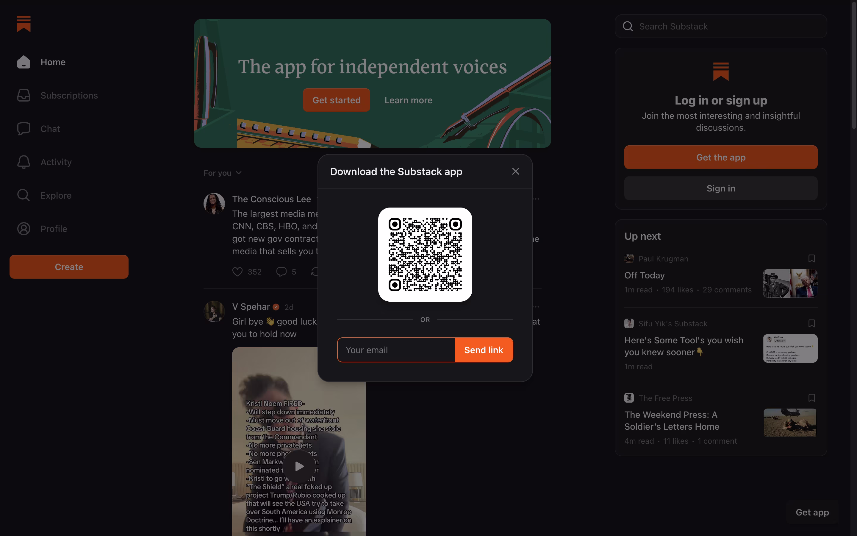 Utiliza la función Notas para compartir actualizaciones más cortas y participa con la comunidad de Substack para hacer crecer tu audiencia.