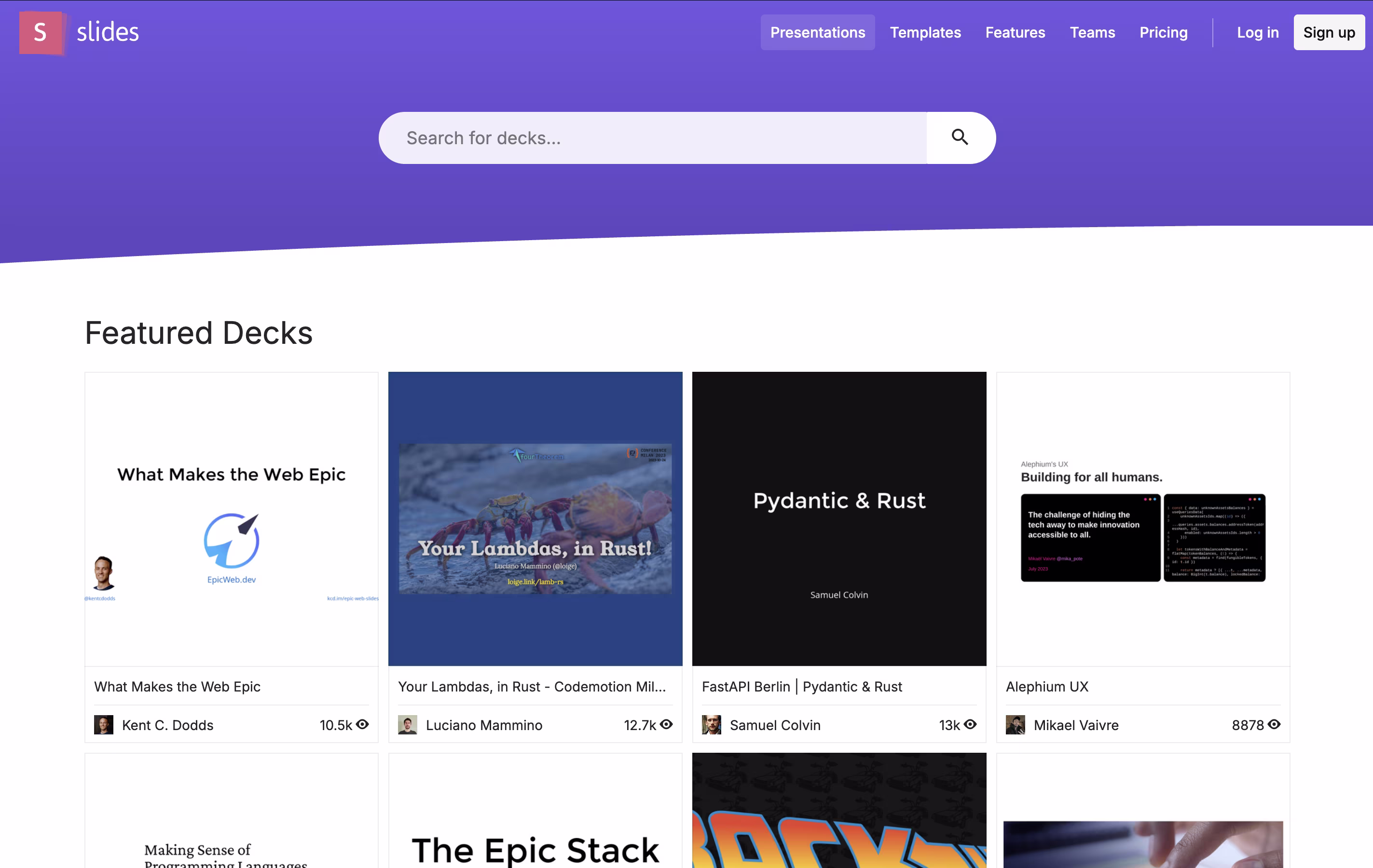 Slides est un outil de présentation basé sur le cloud qui crée des présentations HTML en utilisant le framework reveal.js. Au lieu de créer des diapositives statiques, il génère des présentations web interactives pouvant inclure des animations, la mise en évidence de code et du contenu multimédia. Chaque présentation est stockée sous forme de document HTML, ce qui la rend consultable sur tout appareil disposant d’un navigateur web.