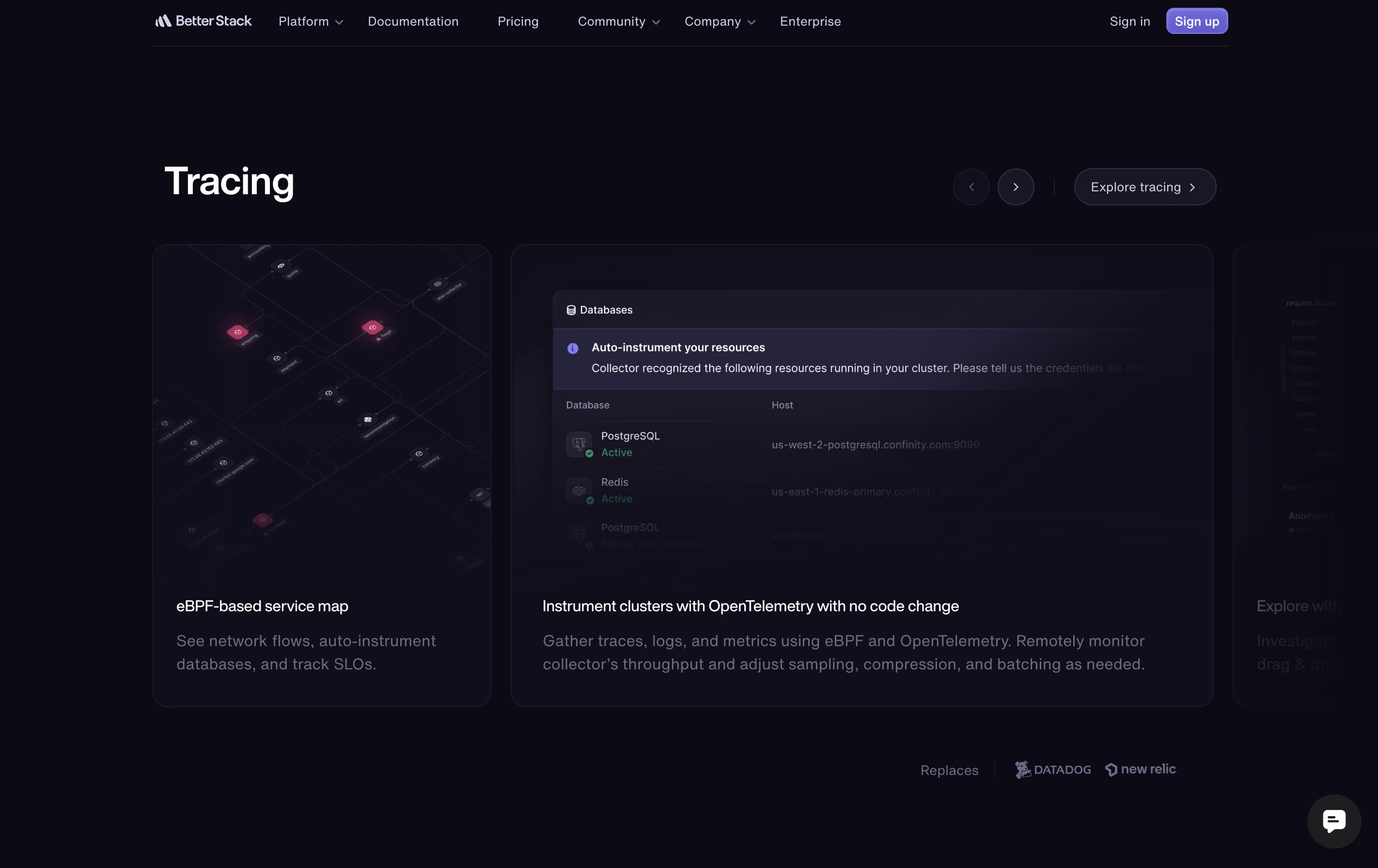 Beyond basic monitoring, Better Stack collects and organizes all your application logs, making it easy to search through millions of log entries to find the cause of problems. It also creates public status pages so you can keep your customers informed during outages. The platform includes on-call scheduling features to make sure the right person gets notified at the right time.