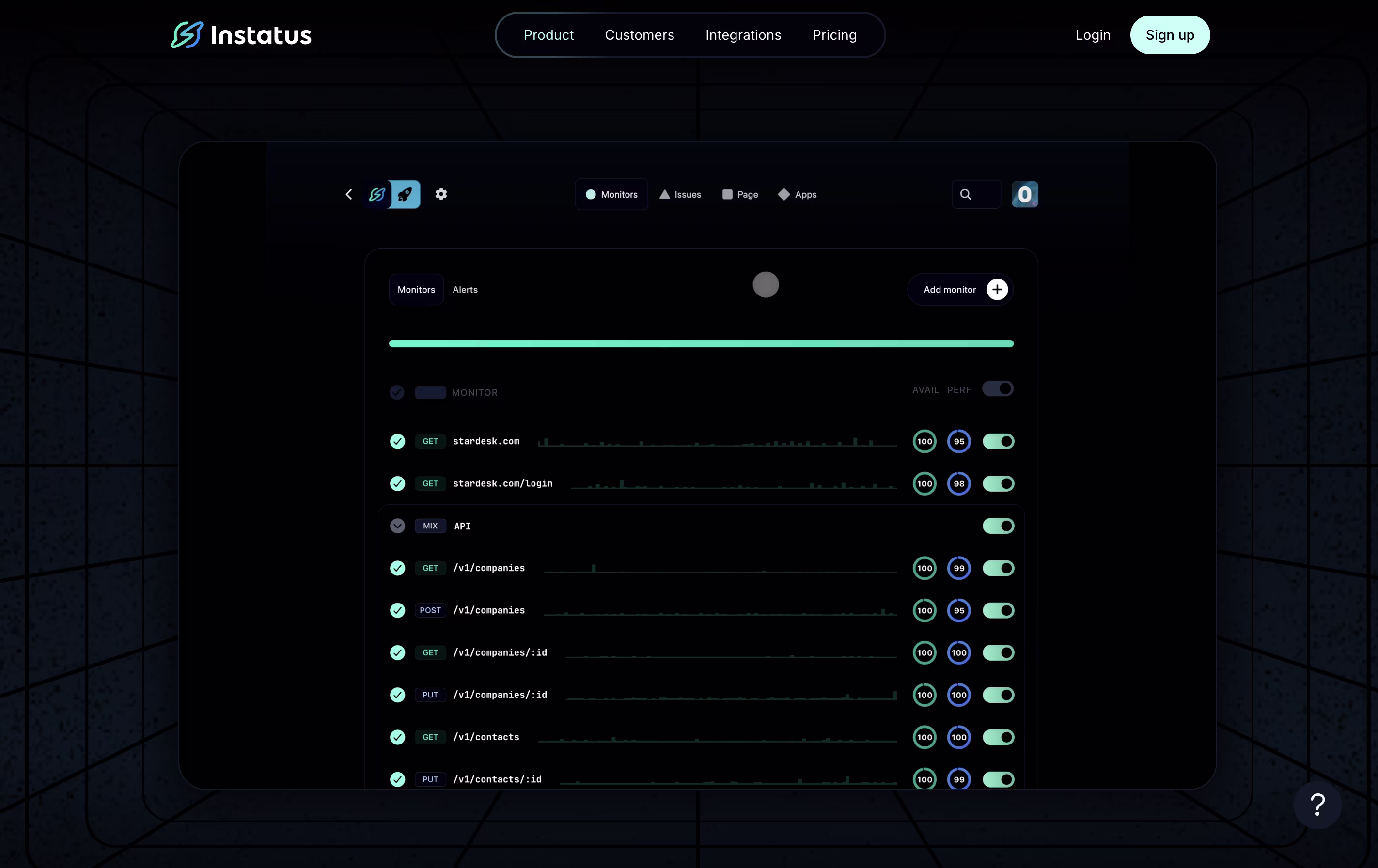 Instatus is a fast status page platform that helps you monitor services, manage incidents with your team, and share updates with customers.