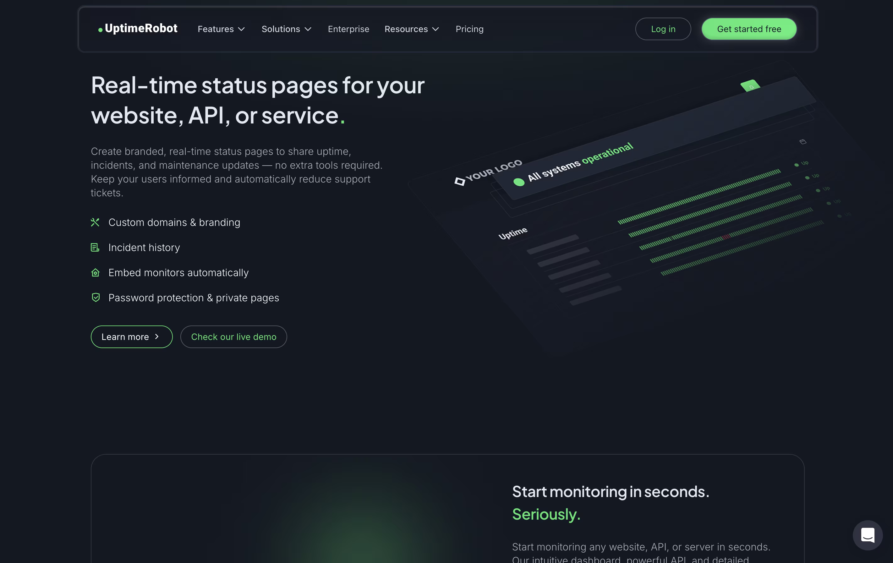 UptimeRobot is a website monitoring service that checks your websites every 30 seconds and alerts you instantly when downtime occurs.