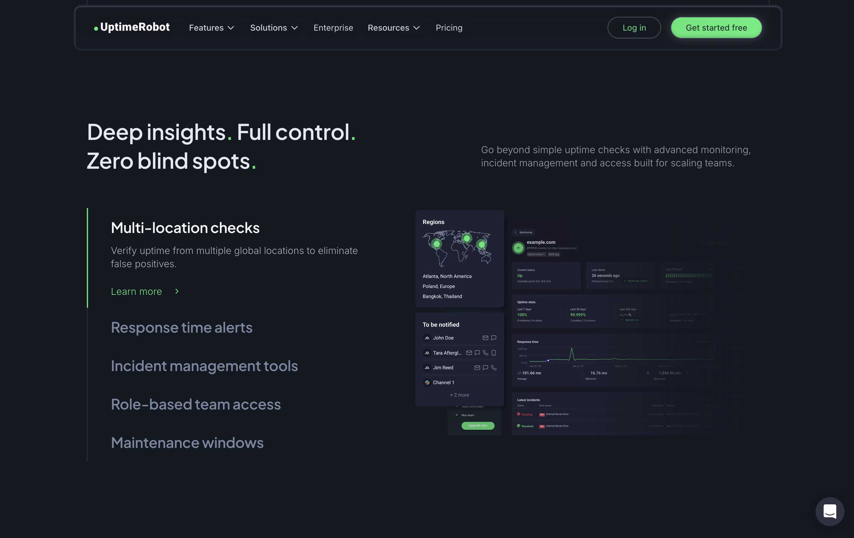 The service runs checks from multiple locations worldwide to avoid false alerts. If your site goes down, UptimeRobot verifies the problem from different places before sending you a notification. This smart approach reduces unnecessary alerts while ensuring real issues get reported quickly.