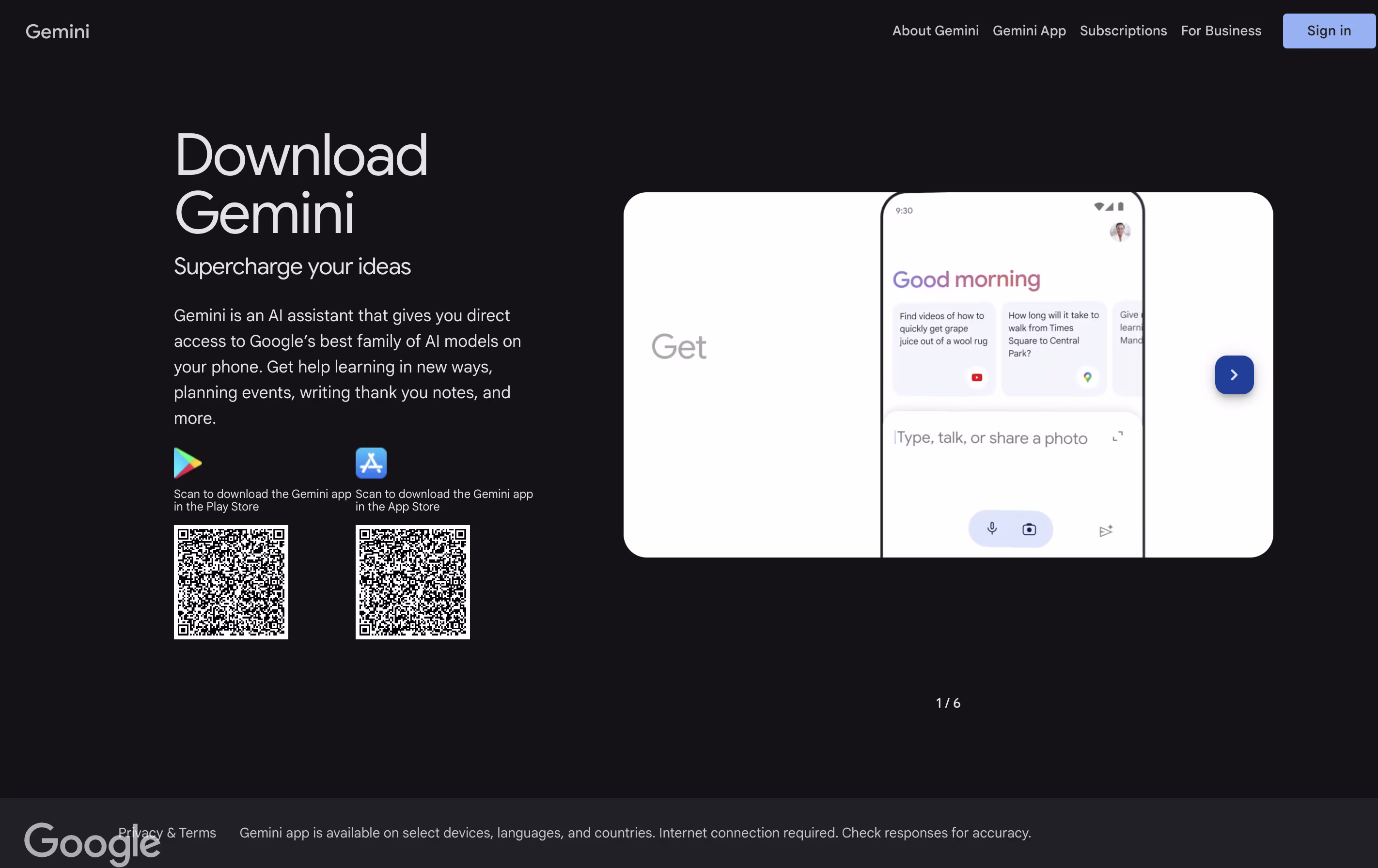 Відвідайте gemini.google.com або завантажте мобільний додаток, потім увійдіть за допомогою свого облікового запису Google, щоб почати.